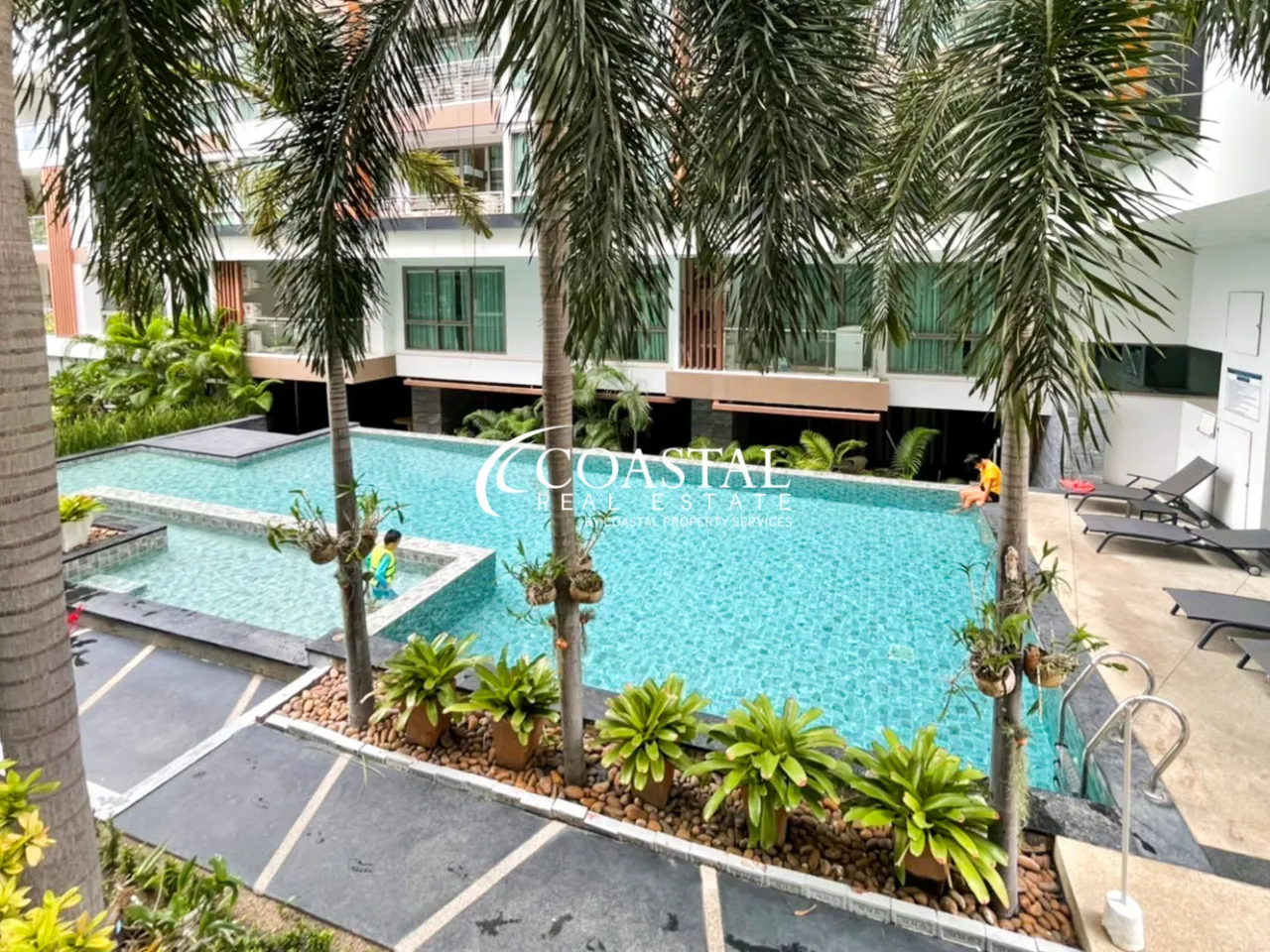 The Urban Condo building amenities include a communal pool and sunbathing deck.