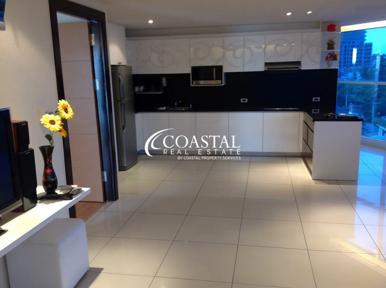 Introducing a charming 1-bedroom, 1-bathroom corner unit condo at Sunset Boulevard Residence in Pratumnak. This cozy 88 square meter abode boasts a thoughtfully designed floor plan, making the most of its space.