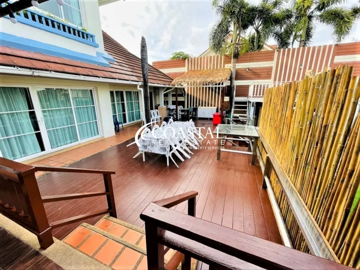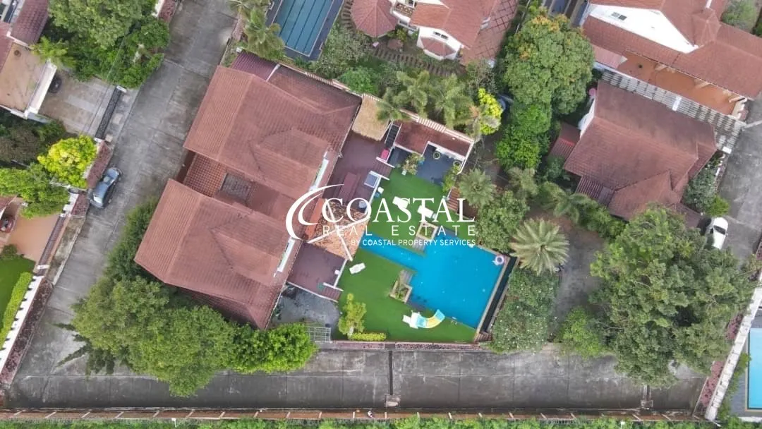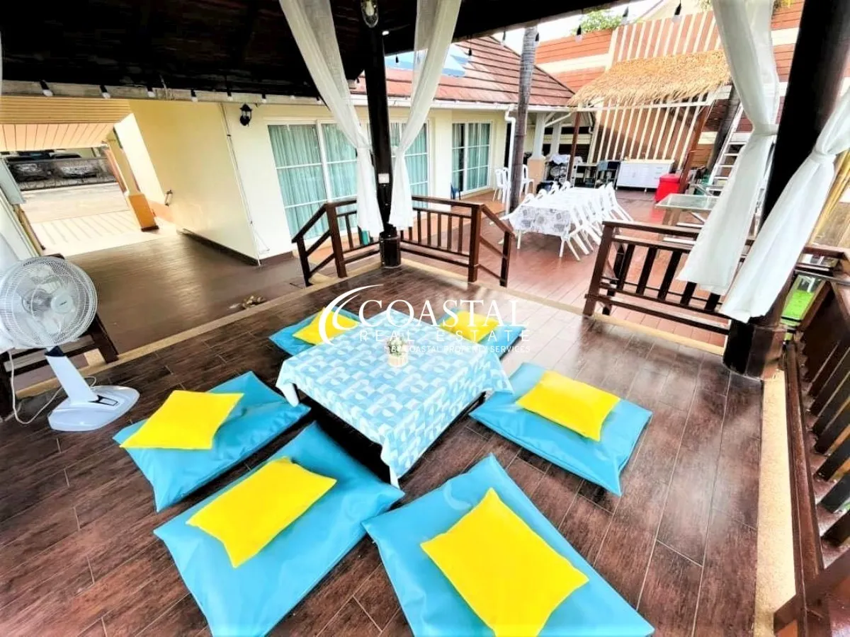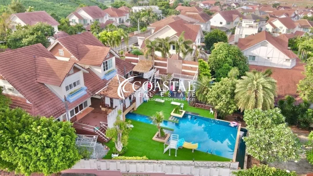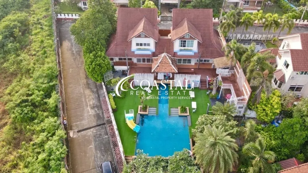 The 2 storey, house has 5 bedrooms, 7 bathrooms, a European & Thai kitchen, spacious living area, storage room, and an entertainment room.