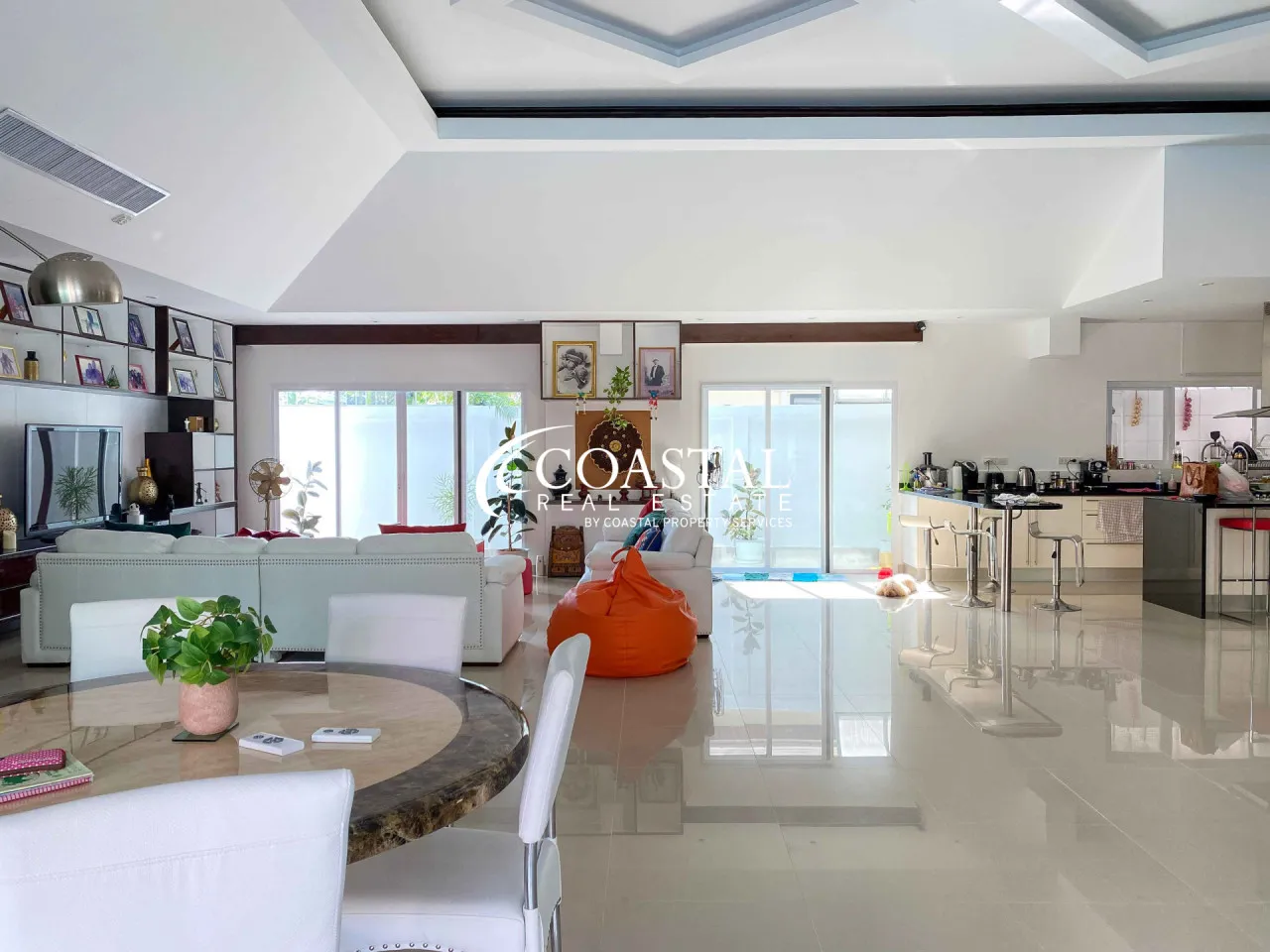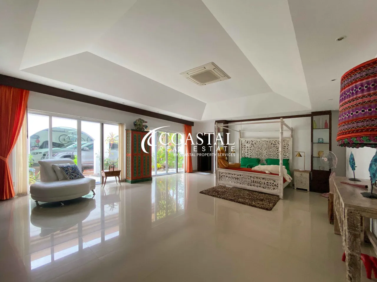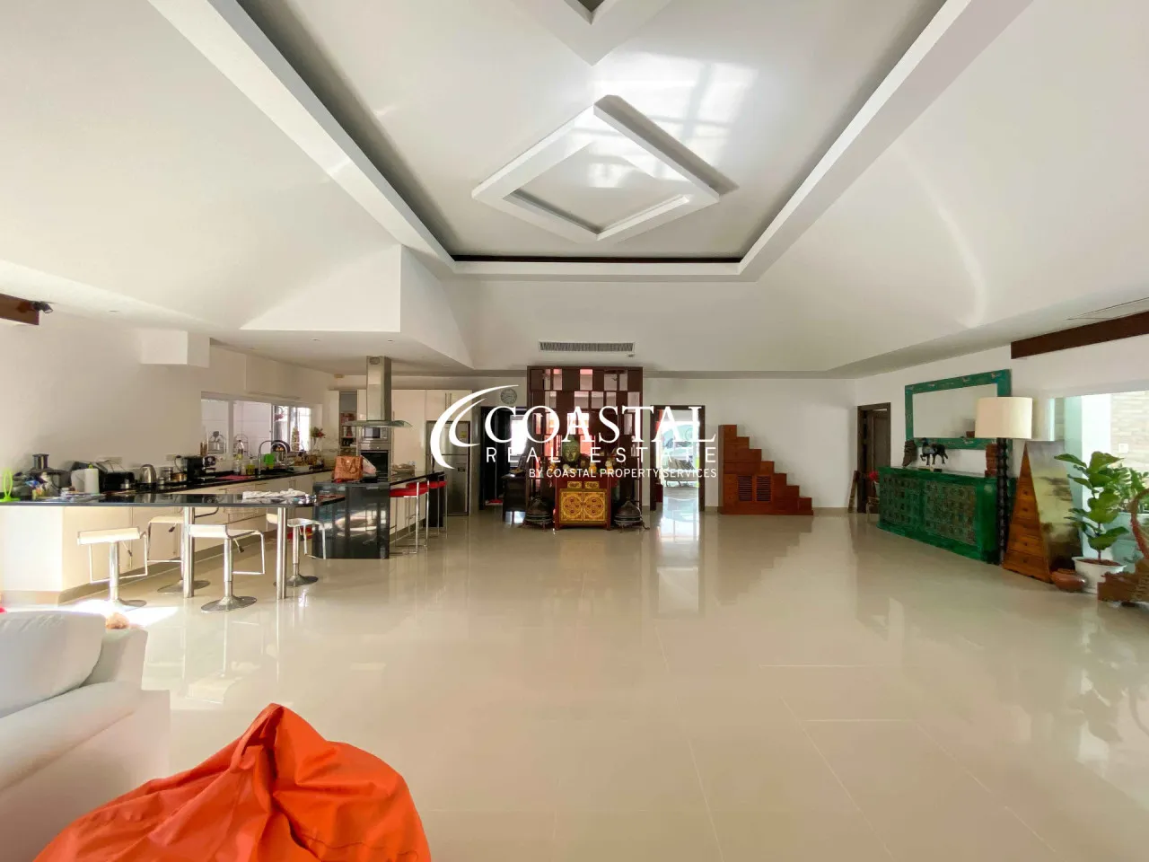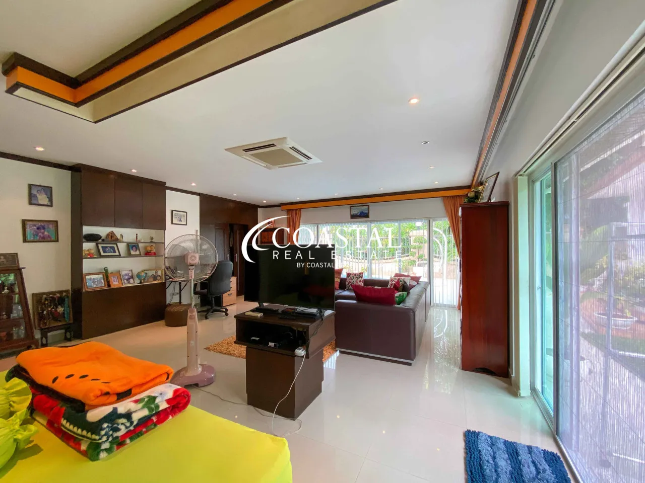Check out this fantastic house for sale in Jomtien Park Villas, Jomtien! It’s a spacious 470 square meter home with lots of room for you and your family. Inside, you’ll find a generous living area and two well-equipped European kitchens. The bedrooms are roomy and come with ample wardrobe space for your convenience.